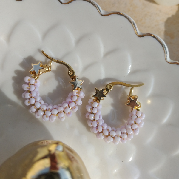 Bellas arracaditas color lila tenue, con estrellitas en los costados.⭐
