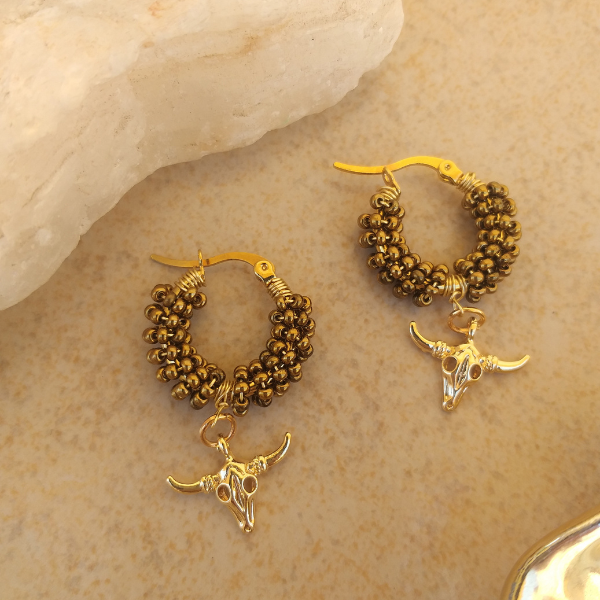 ❤️🔥 Las Arracadas Cráneo son arracadas de lujo bordadas a mano. Están hechas con chaquiras y un dije de cráneo de toro excéntrico. Medidas de la arracada 2cm. Estas arracadas son elegantes, versátiles y únicas, perfectas para completar un atuendo formal o para destacar con un look informal.