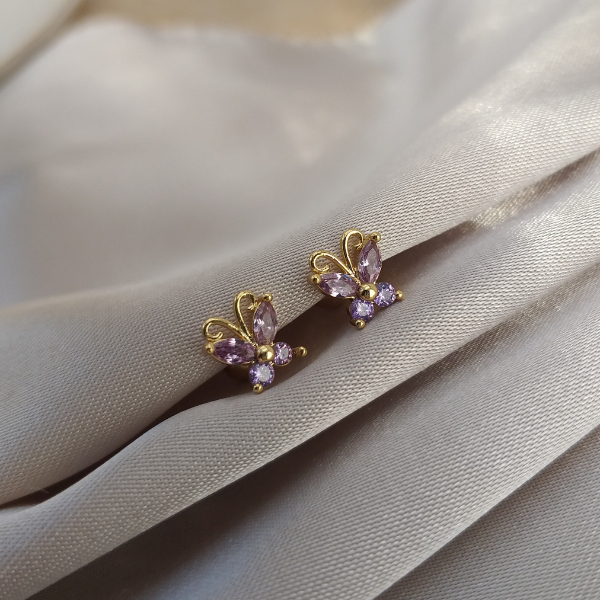 Broqueles en oro laminado, super cute 🦋 mariposas lilas