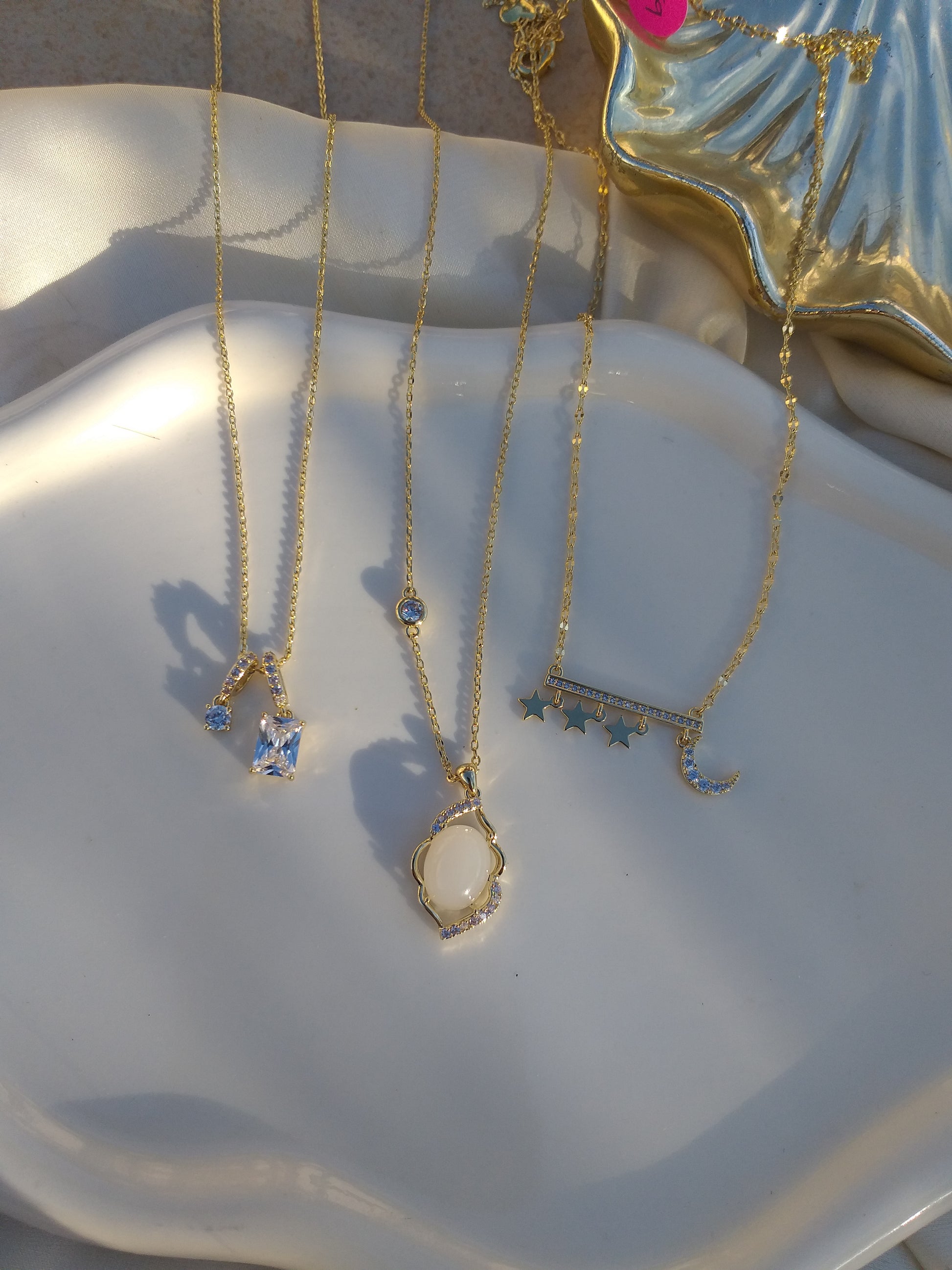 Collar de oro laminado que captura la magia del cielo nocturno con delicadas estrellas y una luna radiante.