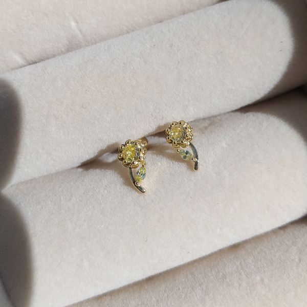 Par de broquelitos en forma de florecita. Se abrochan con bolita