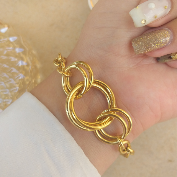¡Encuentra tu estilo con nuestra pulsera chunky de círculos! Esta elegante pieza combina perfectamente con cualquier atuendo, añadiendo un toque moderno y sofisticado. Hecha con materiales de alta calidad, esta pulsera es durable y cómoda de llevar.