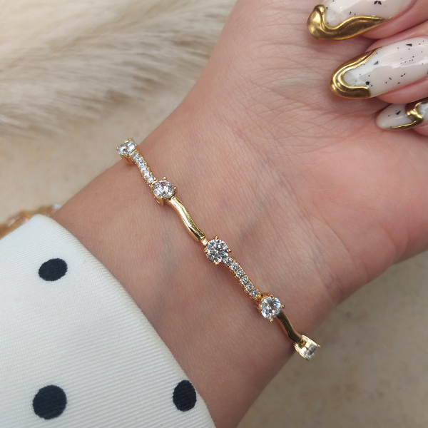Elegante pulso en chapa de oro 24k con zirconias